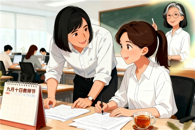 这是我来到中国石油浙江销售湖州分公司的第一载,键盘声、电话铃、打印机运转的嗡鸣声,构成了工作日的背景音。方才,“一对一”培养计划导师修改完了我提交的稿件,红色的批注清晰而详尽,宛若一条条指引前行的路标。恍惚之间,我瞥见日历上的日期——九月十日,心里忽然柔软了一角。又是一年教师节,这个日子始终牵系着母亲的身影,和她坚守了三十年的三尺讲台。