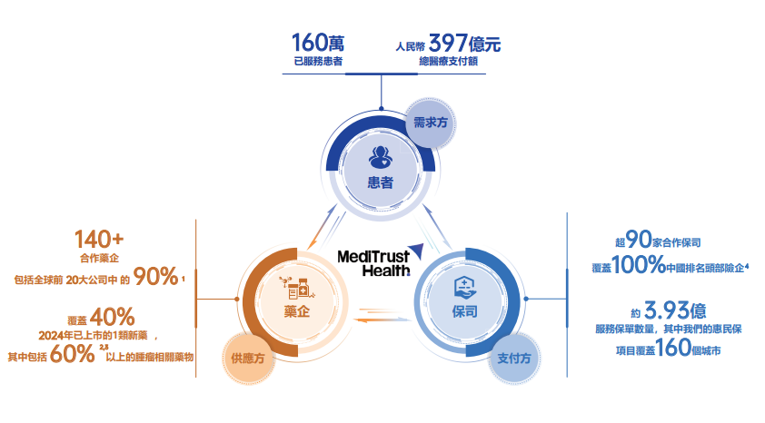 作为深耕医药多元支付领域的先行者,镁信健康自2017年成立以来,始终聚焦患者、药企与保险公司三方痛点,致力于推动医疗支付体系变革。根据弗若斯特沙利文报告,镁信健康已成为中国最大的医药多元支付平台。截至2024年底,其自主研发的医药多元支付解决方案已累计为患者节省约67亿元自付费用,在助力创新药临床普及与健康险行业产品创新方面成效显著,形成了多方共赢的价值闭环。