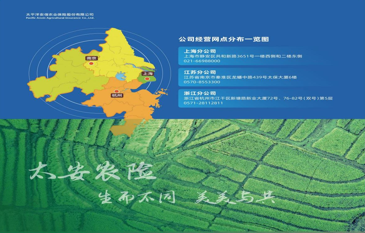 太平洋安信农业保险股份有限公司(原上海安信农业保险股份有限公司)是2004年经原中国保监会批准,上海市委市政府发起成立的全国第一家专业性农业保险公司。2014年,公司加入中国太保集团,迈向融合发展新高地。2020年,公司更名,进入全国布局新阶段。
