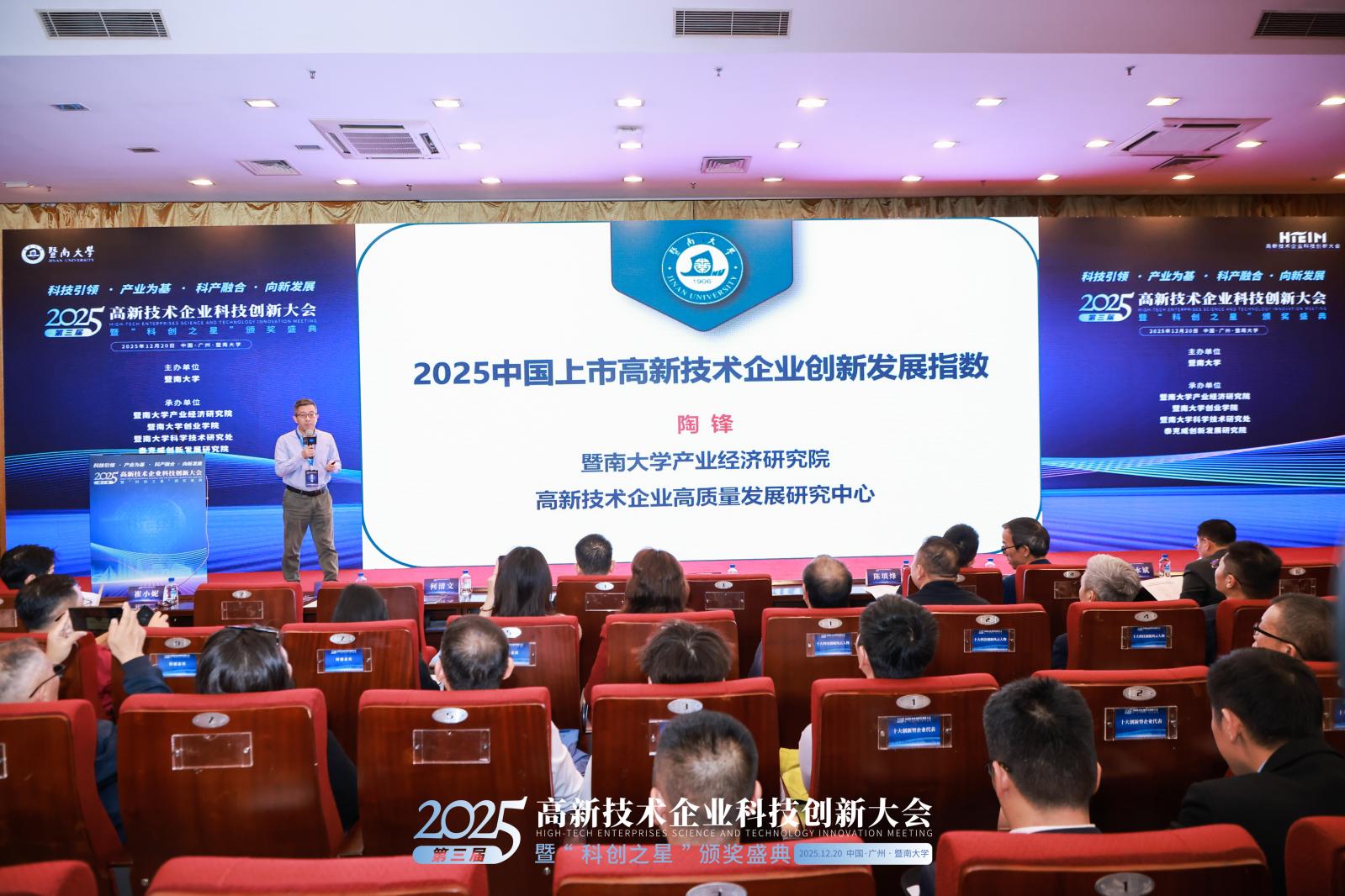 2025年12月20日,由暨南大学主办,暨南大学产业经济研究院、暨南大学创业学院、暨南大学科学技术研究处和泰克威创新发展研究院联合承办的2025(第三届)高新技术企业科技创新大会“科创之星”颁奖盛典落下帷幕。