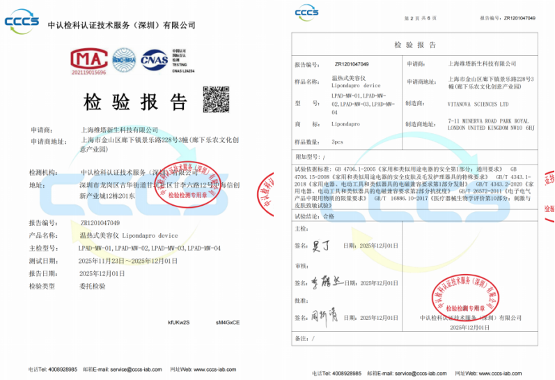 进入中国市场后,LipondaPro品牌所有仪器均通过正规海关报关流程入境,并通过国内权威机构质检认证,各项安全、性能指标均符合中国药监局相关规定,合法合规服务国内消费者。